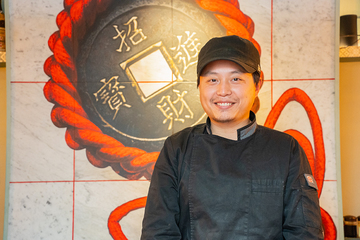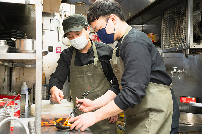 株式会社新偉 代表取締役/調理師本科 昼間部1年制/2012年卒/都内で中国料理店を営む両親の元で育った板垣さん。子どもの頃は「自分も将来は調理師になるのかな」と思っていたが、その大変さを肌で感じていたこともあり、高校卒業後は専門学校でプログラミングを学びSEとして企業に就職。その後、「一日中、PCの前に座っている仕事は性に合わない(笑)」ことに気づいたことと、父親から「店を継ぐ気があるならちゃんと勉強をした方がいい」と言われたことで心を決め、新宿調理師専門学校に入学。卒業後、シェラトン都ホテル東京の「中国料理 四川」や本場(中国四川省)などでの修業を経て、2022年、「中華料理 翔福」オーナーシェフとなる。