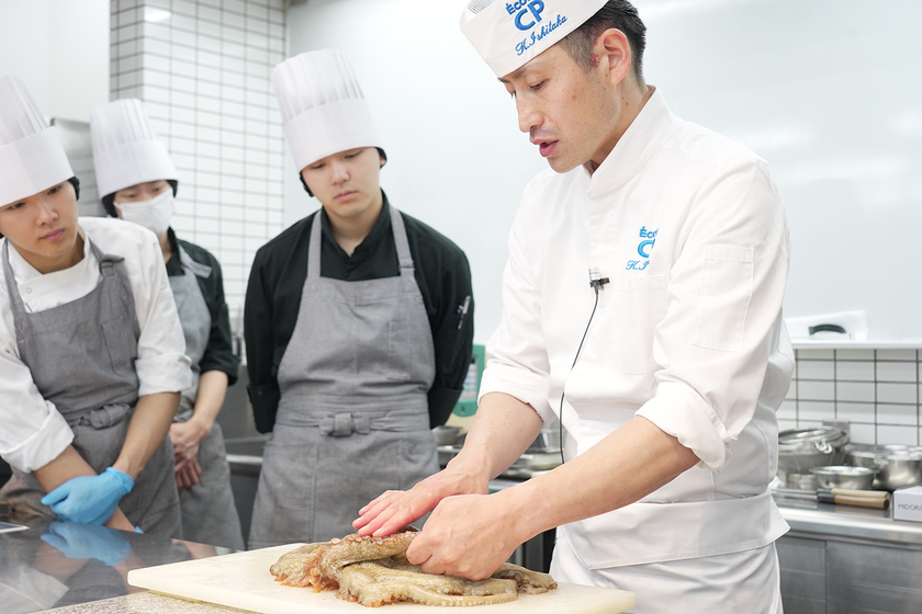 私の日本料理の授業では、和食独自の繊細な包丁さばきや下ごしらえ、煮る、焼く、蒸すなどの調理法、そして日本の土地に根ざした食材の知識などを指導します。今や世界が注目する日本料理の技法や食材の知識を身につけ、日本はもちろん、ワールドワイドに活躍する。そんな夢のある料理人に成長してほしいですね。