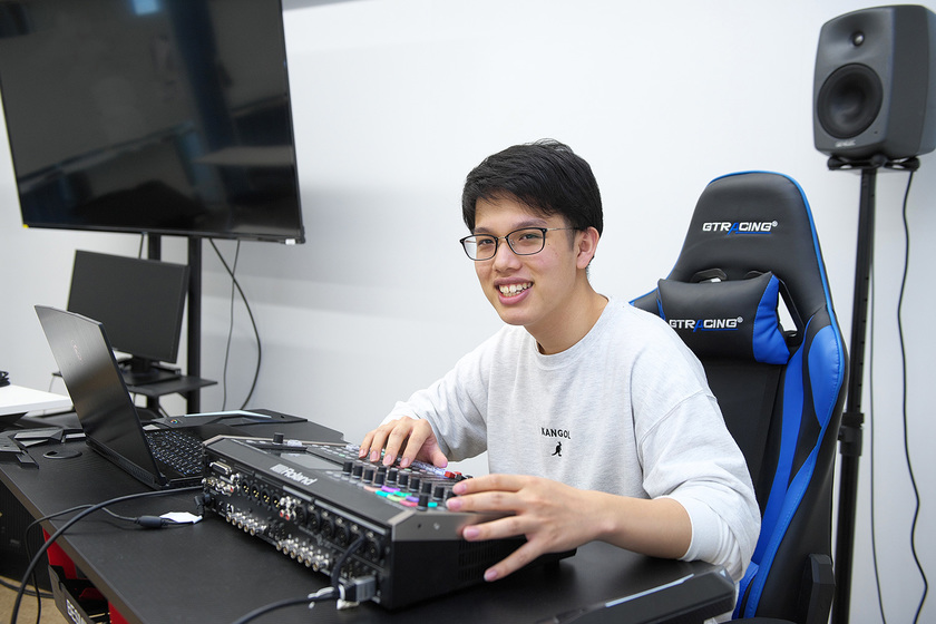 私は機械が好きなので将来はスイッチャーや配信用機器などを扱うエンジニアとして、eスポーツイベントの運営に関わりたいと考えています。学校には、サウンドテクニック学科があり、機材に詳しい先生もいて色々教えてもらえるので、もっと学んで日本のeスポーツシーンを盛り上げていきたいです。