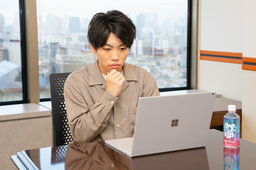 ゲーム業界に興味を持ったのは野球ゲームがきっかけで、中学生のころから「将来、野球ゲームがつくりたい」という思いを持っていたんです。そこから高専に入って5年間プログラムを学び、部活でもゲームづくりをしていたのですが、卒業前に「このままでは自分の目指すゲームプログラマーにはなれそうにない」と気づき、神戸電子専門学校に入学を決めました。コロプラに入るきっかけになったのはゲーム業界の人が来校し、直接作品に対して批評してもらえる作品発表会です。私の場合は、スライムの形とプニプニとした動きをプログラムだけで再現することに徹底的にこだわったゲーム作品が認められ、面接のチャンスをいただきました。