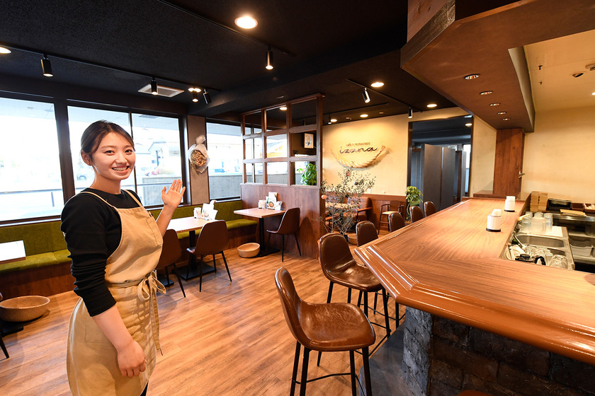 お好み焼きと炭火焼き鳥居酒屋などの飲食店の経営とチェーン展開をしているのが、私の働くグッドピープルです。今任されているのは、カフェレストラン「izana(イザナ)」の店舗運営全般。このお店は、新業態として2022年3月にオープンしたもので、私は立ち上げから関わらせていただきました。お店では、淡路島の素材を使ったカレーや地元の有名店とコラボしたスイーツメニューなどもあり、淡路島の魅力を存分に味わっていただけるのが魅力です。仕事としては営業、売上管理、スタッフのシフト管理、SNSを使った広報活動など、いろいろ忙しいですが、徐々にお店のお客様が増え、喜んでいただいていることに手応えを感じています。