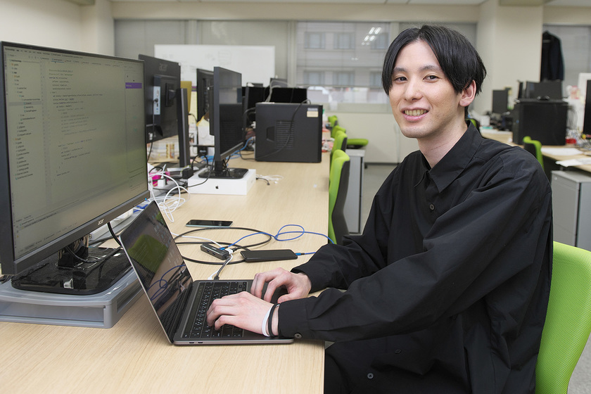 デジタル・インフォメーション・テクノロジー株式会社 西日本カンパニー勤務/情報処理学科 Webエンジニアコース(現:AIシステム開発学科)/2021年卒/ITやデジタル業界の未来性に魅力を感じ、めざすように。神戸電子専門学校入学後は、仲間とユニークなWebサービスやアプリを企画開発し、多くの気づきを得た。現在は東証一部上場企業のデジタル・インフォメーション・テクノロジーでモバイルアプリ開発に携わっている。