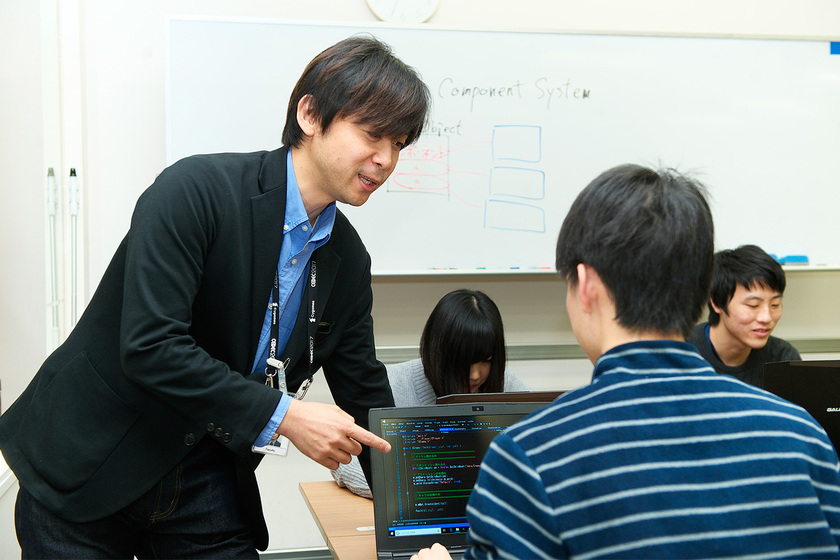 学生達がチームを組み、ゲームの企画から開発まで、トータルな流れで行うプロジェクト実習の授業では、実際に自分達のつくりたいゲームを形にできます。完成したゲームは、コンテストへも応募しているとのこと。「今回、東京ゲームショーの日本ゲーム大賞のアマチュア部門でトップ10に入り表彰もされました。今後はこうした取り組みを増やし、目標を持って学べるようにしていきたいですね」と鎌田先生も新たなチャレンジにも意欲満々。この演習を通じ、自分で考えて一からプログラミングする力を養いたいと先生は考えておられます。
