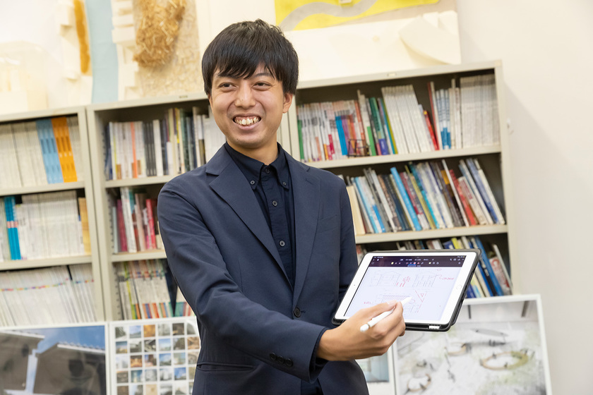 「自分の思い描いた建築物やインテリア空間のイメージをカタチにする」そんな建築・インテリアの面白さを体験できる実習を指導している高岸先生。「建築・インテリアCG講座」や「模型制作講座」「プランニング講座」など、体験実習の多くが、実際に学生自身が考え、つくる、デザインする、企画することで楽しみながら学べるよう配慮されています。「教員や先輩が丁寧に指導しますので、心配しなくても大丈夫、チャレンジしてみてください」とは、高岸先生からの応援メッセージ。実際にカタチに仕上げることでスキルが身につきます。
