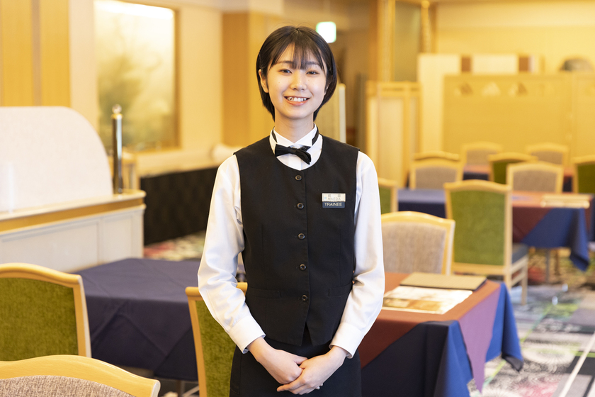 周囲をよく見て、必要に応じて行動できる力が重要です。普段から気配りを意識して、感性を磨いてほしいと思います。また、近年は海外からのお客様も多いので、積極的に英会話にもチャレンジしてみてください。
