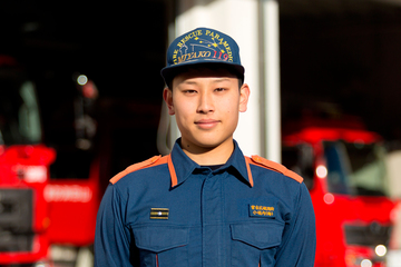 この仕事に興味を持ったのは、高校3年生の時です。将来は地元の人々の役に立てるような仕事につきたいという思いがあり、火災や災害といった面から住民を守る「消防」という仕事に惹かれました。消防士は人を助けるのが仕事ですが、職場の人が困ったり悩んだりしている時に助けられないようでは住民も助けることはできないと思います。だから周囲の人との日頃のコミュニケーションを大切にしています。細かいことに気がつけて、人への心配りのできる人になりたいと思っています。今、仕事でチャレンジしたいことは、消防救助技術大会で県大会に出場することです。その目標に向けて、毎日、職場の人たちと一生懸命、訓練に励んでいます。