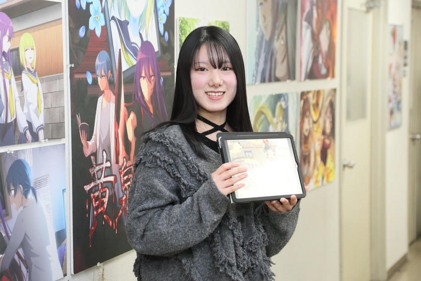 母の影響でゲームやアニメの絵を描くことが好きになりました。好きなことで食べていきたいと思い、本校のオープンキャンパスへ。先生方と学生のやり取りをみて、自分もここで学びたいと思ったのがきっかけです。