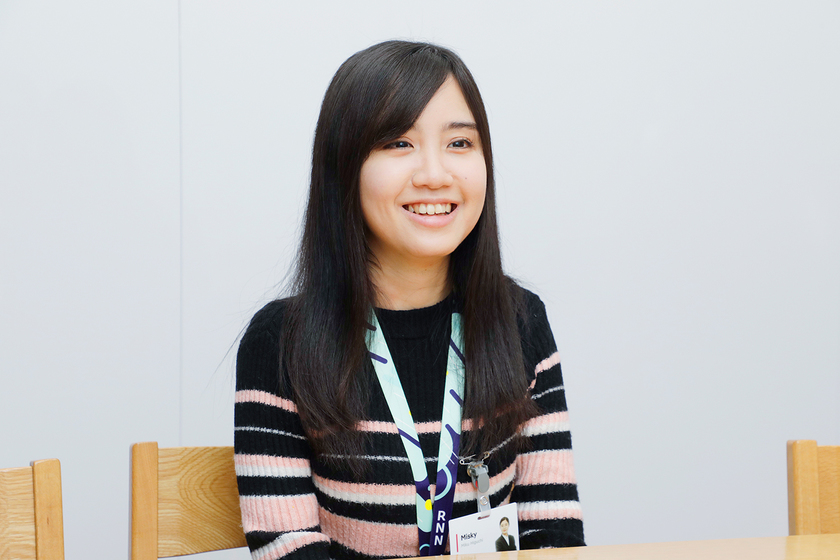 外国籍の従業員や顧客と関わることが多い環境。社内では英語ネームで「Misky」と呼ばれています。