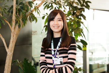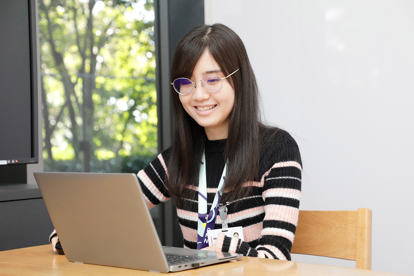 勤務先の楽天ソシオビジネスは、楽天グループ内のアウトソーシング会社として、Web製作、システム開発業務や事務業務等の幅広い仕事を請け負っています。私が担当しているのは、従業員の証明書等を発行する業務です。自分の業務が誰かの役に立っていると実感できる瞬間に、日々大きなやりがいを感じています。最近、業務の一環で英訳をする機会があり、学生時代に培った英語力を仕事に活かすことができて嬉しかったです。このような自分の個性を活かしつつチャレンジできる環境に感謝しながら、さらに貢献していきたいと考えています。この春からは新卒社員が入社するので、先輩として入社後に学んだことを伝えていきたいです。
