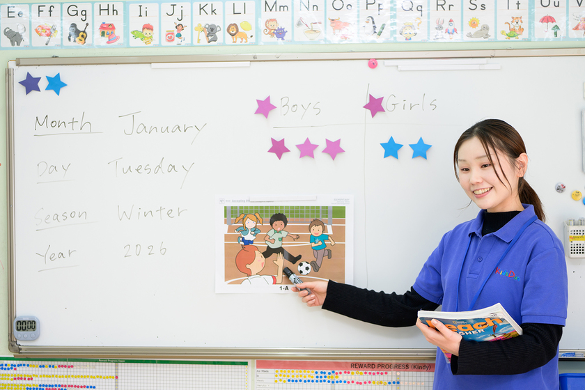 Kids Duoではビデオを見ながら英単語を学んだり、ゲームをしたり、会話をして英語で楽しくコミュニケーションを図る時間もありますし、ソーシャルディベロップメントといって道徳を英語で学ぶ時間もあります。子どもたちの英語力の成長はもちろん、人としての個性が伸びていく大切な時期に携われることへのやりがいを感じています。海外旅行などで、身についた英語を生かせたなどのエピソードを聞くとやはり嬉しいですね。Kids Duoでは子どもたちの英語力のサポートをする他、子どもたちの個性を見い出し、自分で考えて行動していく【自分力】を身につけるサポートを同時にしていくため、多方面から子どもたちの成長を助けています。