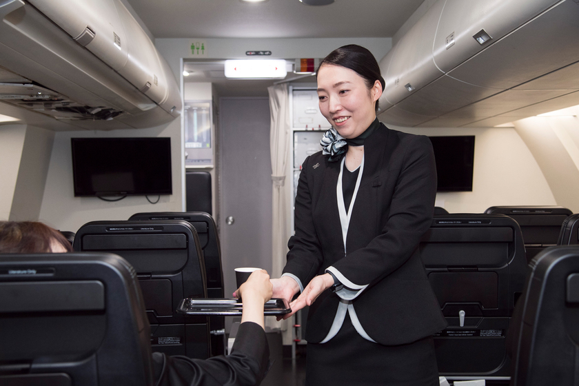 スターフライヤーで客室乗務員をしています。毎日数百名のお客様がご搭乗される中で、常にお客様が何を求めているのかを考え、お一人おひとりに快適な空の旅をご提供できるように努めています。まだまだ未熟で業務を行うことに精一杯になってしまうことも少なくありません。そのような中でも、自身の行動やさり気ない配慮でお客様に喜んでいただき、快適だと感じていただけるフライトをめざして邁進しています。客室乗務員は、お客様のご要望に気づく観察力や視野の広さ、柔軟な判断力が必要とされる仕事。日々の業務に真摯に向き合うことで、客室乗務員として、また人としても大きく成長していることにやりがいを感じています。