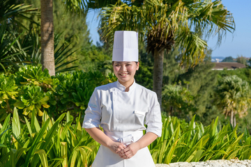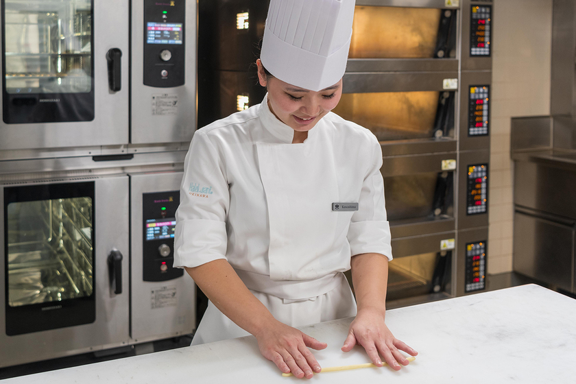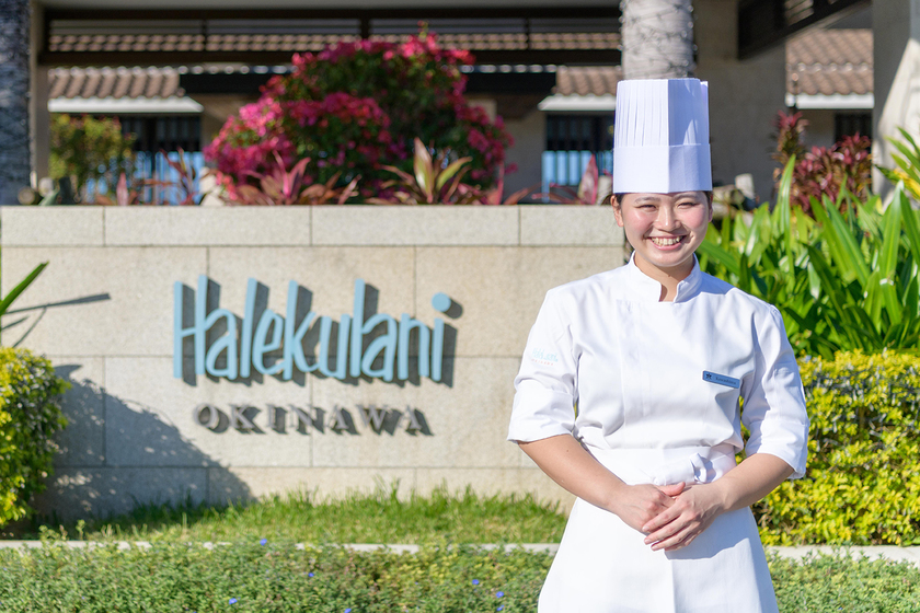 子どもの頃からお菓子を作って、人に食べてもらうことが好きでした。知識が身に付くほど面白くなり、DAICHOで本格的に製菓を学び、就職してからは製パンも。好きなことをずっと続け、それを仕事にできる喜びを日々かみしめています。昨年、勤務先の本拠地である「ハレクラニ ハワイ」のベーカリー・ペストリーの仕事を研修で経験。日本とは異なる食文化を知るのが楽しくて、貴重な機会になりました。出身は静岡ですが、いろいろな人と出会って自分の世界を広げたいと考え、進学で大阪へ。そして就職で沖縄へと居場所を移してきました。今は、いつか海外で働く夢に向かって、英語の勉強も始めています。