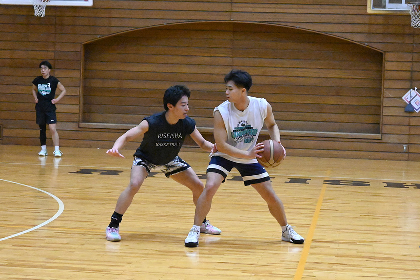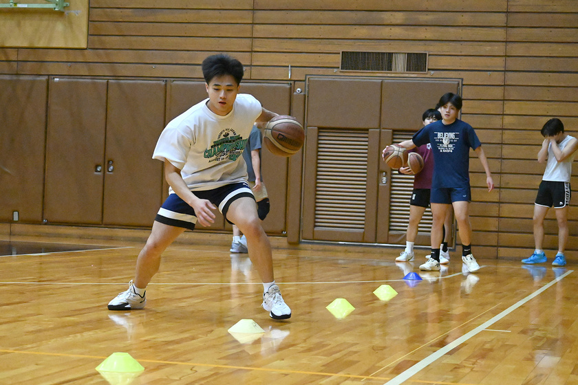 バスケはコンタクトスポーツなので、機敏に身体を動かせないとケガのリスクが高まります。選手として重要なことは、身体や筋肉の正しい使い方を学び、ケガをしない身体を作ること。学内には日本スポーツ協会公認アスレティックトレーナー資格を持つ教員が在籍しており、トレーニングのアドバイスを受けることも可能です。また、良いポジションで攻撃するためには体力も不可欠。入学後しばらくは、持久力強化を中心とした練習メニューを行います。こうした練習を積み重ねることで、学生のスタミナは向上し、大学生とも互角に戦えます。
