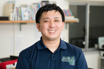 実技授業を担当する、淺村典正先生。立命館大学卒業後、大阪ディノニクス(のちの大阪エヴェッサ)に所属。選手活動と並行して、出身中学で外部コーチを務め、指導者としてのキャリアをスタート。その後、立命館大学バスケットボール部ヘッドコーチ、関西選抜ヘッドコーチを務め、本校教員となる。2017年えひめ国体では、大阪府国体チームヘッドコーチに就任。現在も本校勤務の傍ら、社会人チームのヘッドコーチを務める。