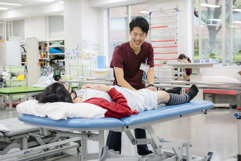 病院のリハビリテーションセンターで働いています。ケガや病気の影響で身体の痛みや動かしにくさを感じている患者さんの身体機能を改善させ、日常生活への復帰を支援します。患者さんは、スムーズな歩行など、以前はできていたことができなくなっているケースが多々あります。「自宅で生活したい」といったご本人の希望に近づくため、時には辛いリハビリも頑張ってもらわないといけません。だからこそ、病院から離れたときに『頑張ってよかった』と思ってもらえるよう全力で取り組んでいます。また、医療現場の機械や治療法は日々進歩するため、しっかり追いつき、有効な治療アプローチの方法をさまざまな角度から提案できるよう努めています。