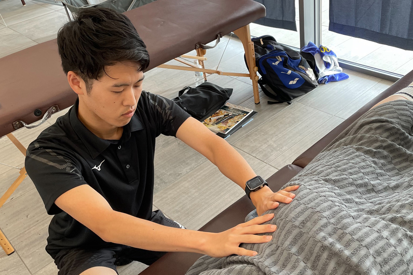 「大阪回生病院リハビリセンター」理学療法士/理学療法学科(医療+アスレティックトレーナー専攻)/2022年卒業/1999年生まれ、京都外大西高校出身。小学4年生から水泳を始め、専門は自由形とバタフライ。履正社国際医療スポーツ専門学校での学びを経て、理学療法士、日本スポーツ協会公認アスレティックトレーナーの資格を取得。現在は大阪回生病院リハビリテーションセンターに勤務。業務の傍ら、大学水泳競技部やスイミングスクールでトレーナー活動も行っている。