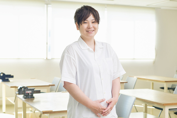 医療・福祉・保健・スポーツ、4つの分野を専門的に学べるカリキュラムが本校の特徴です。私は、3年生の「運動器系理学療法治療学」、2年生の「運動療法」を担当しています。「運動療法」は使用頻度の高い治療法で、正しい知識と技術が必要になります。ただ、知識だけではイメージしにくい部分もあるため、実技を通して、治療する側、される側の両方を体験することを大切にしています。『どう触られたら心地よいか』など、患者さんの気持ちになって治療するには、言葉で伝えるより実際に感じることが一番だと考えているからです。じつは私自身、本校本学科の出身。教員になる前は大阪回生病院に勤め、大学のバレーボールチームのトレーナーとしても活動していました。私ならではの経験を指導に活かせるよう心掛けています。