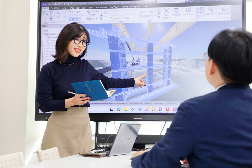 橋梁事業は社会の交通インフラを支える重要な仕事であり、自分が関わった橋が完成したときに大きな達成感と誇りを感じます。橋を通じて渋滞の解消や交通ルートの短縮など、地域や人々の生活に直接貢献できる点がやりがいです。橋の形式が同じでも、地形や現地の交通量などの現場条件が違うだけで、設計も施工方法も大きく異なり、一つとして同じものがないのも魅力の一つです。また近年は、3Dモデルを活用して設計から施工、維持管理までの情報を一元化を目的としたDX技術の活用が進んでおり、橋づくりの常識が大きく変わろうとしています。