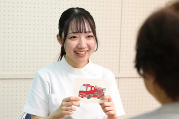 言語聴覚士は、コミュニケーションを取ることだけでなく、それが困難な方から想いを引き出し、聞き出し、家族や他職種に伝えることも大切な役割です。そのためには、対象者とたくさんの会話を経験することが必要と考え、母体である鵜飼リハビリテーション病院の協力の下で、患者様との会話の経験や現場の言語聴覚士・入院患者様から指導を頂く場を設けています。このような経験は、コミュニケーションスキルの向上、対象者と話すことに対する垣根をなくし、より「人として関わる」ことの重要性についての気付きが得られると考えています。