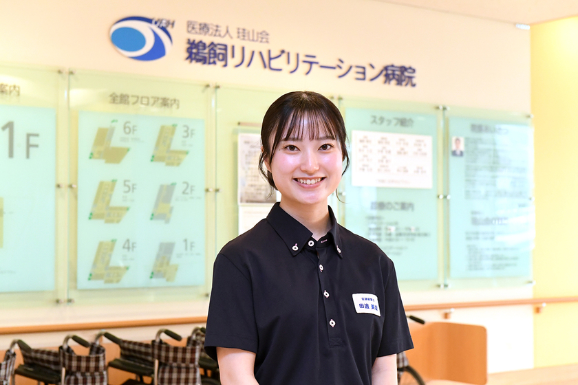 医療法人珪山会 鵜飼リハビリテーション病院勤務/言語聴覚学科 卒/2023年卒/在学中の実習の受け入れ先として経験を積んだ、鵜飼リハビリテーション病院へ入職。同じ学校の先輩が多く勤務しているので、安心感があったそう。言語聴覚士の魅力について「ことば・聞こえ・食べることなどを通して寄り添える仕事です。人の話を聞くことが好きな人、じっくり関わりたい人に向いていると思います」と田邊さん。患者様との関りで大切にしていることは、距離感と話し方や声のトーン。信頼感・説得感を得るためにも必要で、大切にしていると話してくれました。