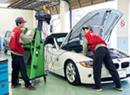 業界大手の企業と連携し、定期的に実店舗での現場実習を行っています。一般的な整備だけではなく、カーナビなどの用品取付や板金・塗装などの車体整備も業界大手企業でしっかり学べます。さまざまなメーカーを取り扱う企業だからこそ学べる実践的なプログラムで、どこへ就職しても即戦力となれる技術と経験が身につきます。