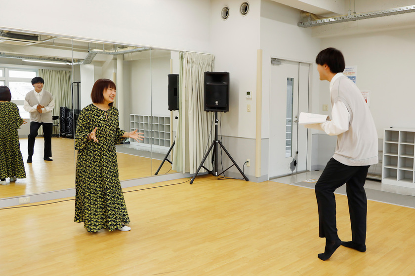 声優で紙芝居師でもある倉田先生は、1年次の声優演技基礎・紙芝居・オーディオドラマ・キャラクターゼミなど幅広い授業を担当。言葉に感情を乗せてより多くの人、より遠くの人に伝える方法を実践的に学べます。中でも声優演技基礎は「何をしてもOK」という、学生が自ら考えて自由に表現することを促すユニークな授業。最初は戸惑う学生たちも、次第に自分らしさを見つけ豊かな表現力を身につけていきます。チームで行う授業では、一人では味わえない「掛け算」を体感し、役者としてはもちろん、人としての経験値も得ることができます。