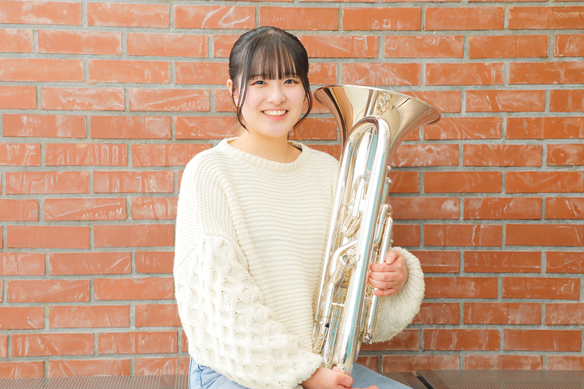 小学生のときからユーフォニアムを演奏しています。高校時代に吹奏楽部の顧問の先生から「音楽を続けたほうがいいよ」とのアドバイスを受け、この道に進むことを決めました