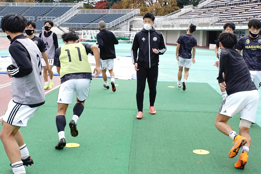 山形県私立羽黒高校サッカー部 所属/スポーツトレーナー科 アスレティックトレーナー専攻/2021年3月卒/学生時代から「人とのつながり」を大切にしてきているという本間さん。学生時代共に切磋琢磨してきた仲間達とは、今もzoomなどで情報交換をしてるという。「1人では目標達成は難しいからこそ、誰とどのように関わっていくかがとても重要なんです」と力をこめる。スポーツ業界を目指す後輩たちには「一人で息詰まった時は一緒に勉強している仲間や、親身になって話を聞いてくれる先生方がいます。ぜひみなさんも一度自分の能力を信じて難しい選択肢を選んでみてください!」と力強いエールを送ってくれた。