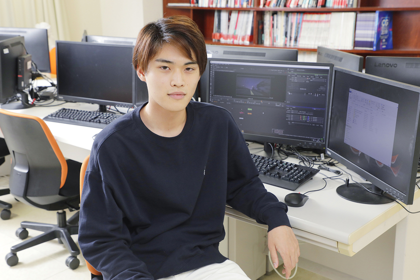 中学生のとき、携帯電話のアプリで写真を合成して簡単な作品を作ったら、周りの人がとても喜んでくれました。もともと映画が好きだったこともあり、両方に関われる仕事に就きたいと考えて映像デザインを選びました。
