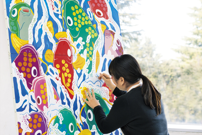 イラストレーションは、書籍の装丁をはじめ、コミックや絵本、電子メディア、ポスター、企業・商品のキャラクター、アート作品にいたるまで、さまざまな場面で用いられます。アナログ画材の色鉛筆、水彩、パステルや、デジタルソフトを駆使し、クライアントの要望に応えられるよう指導していきます。キャラクターデザインでは、目的や魅力を体現するキャラクターを生み出す力を養います。さらに、企業や団体の公募や依頼によるキャラクターをデザインすることで、実践力を養い、就職活動でのポートフォリオの作成や、即戦力としての力を身につけます。