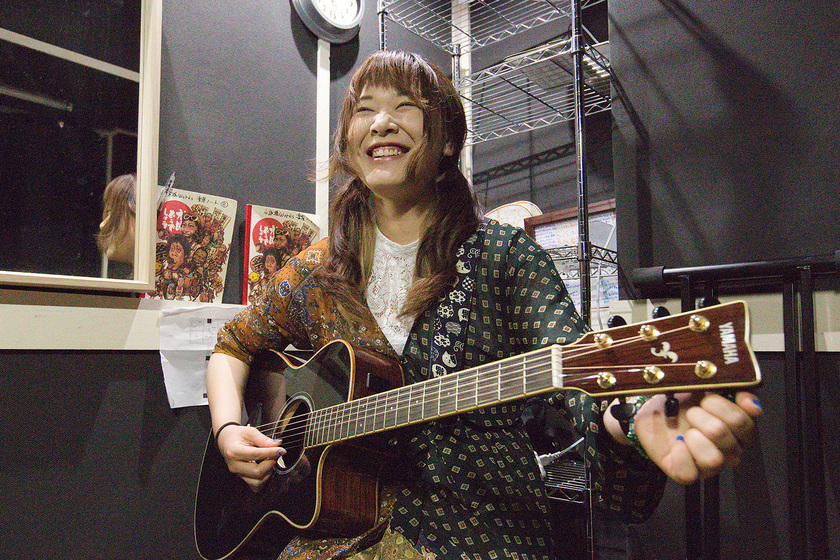 楽器もまったく弾けないまま専門学校に入学しました。授業ではギターなどの実技もあり、基礎から指導はしてもらえますが、当然ながら楽器は自分で練習しないと上達しません。先生方にもよく言われましたが、とにかくやってみるしかないんです。でも、考えるよりも行動する、やってみることで、できることは着実に増えていきますし、それは自分の自信にもつながります。入学して数カ月後にはギターのコードが弾けるようになりました。ミュージシャンを志してビジュアルアーツに入学したことで、私は大きく変わりました。行動力もコミュニケーション力もまったくなかった私でしたが、今ではこうして人前で弾き語りライブができるんです。