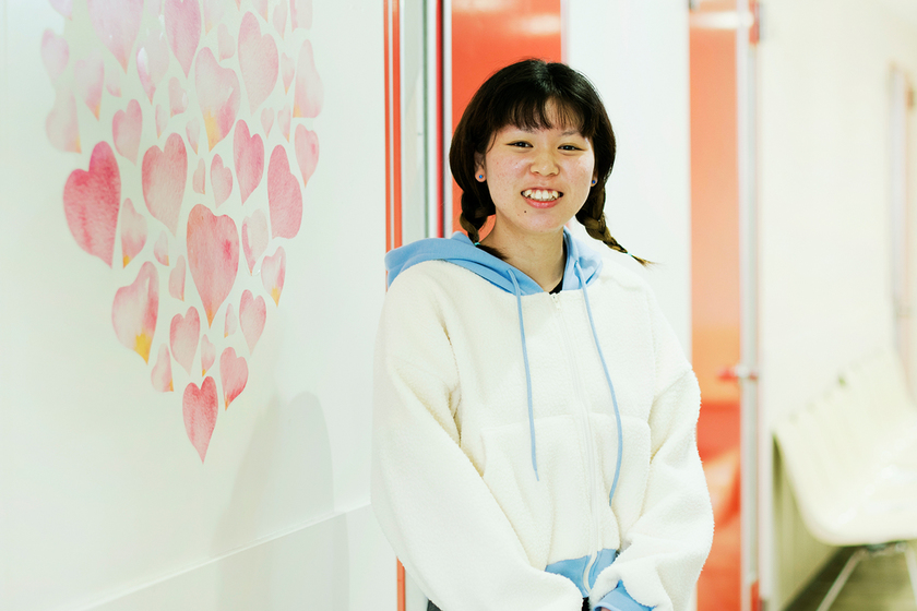 高校生の時、K-POPグループのコンサートに行き、ファンの人たちが通訳なしでメンバーの話を理解しているのがうらやましくて、韓国語を勉強しようと決めました。この学校には、留学制度に惹かれて入学しました。