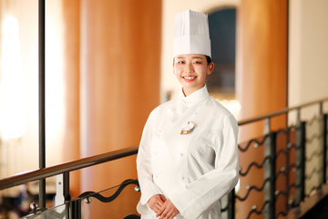 ホテルパティシエとしてラウンジのケーキの仕込みや仕上げ、フルーツカット、ブッフェレストランのデザートづくり、ウェディング、そして先輩とともに商品開発に携わらせていただくなど、幅広く業務を担当しています。V.I.P.ゲスト用のスペシャルケーキを飾るマジパン細工をつくらせていただいたことも、貴重な経験になりました。東京製菓学校在学中に洋菓子に関する豊富な知識と技術を身につけたことで、就職後の現場でもすぐに対応することができたと実感しています。