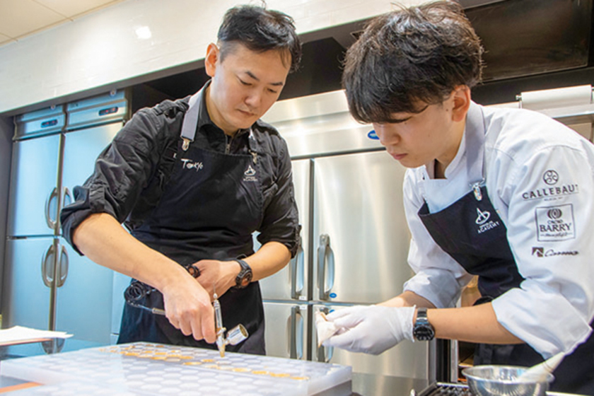 バリーカレボージャパン株式会社 チョコレートアカデミーセンター 東京 勤務/洋菓子本科/1998年卒/日本国内やフランスの洋菓子店での勤務の後、スイス・チューリヒに本拠を置き、カカオ豆やチョコレート製品を扱う「バリーカレボー」の日本法人に就職。現在は、同社が運営する製菓学校の運営責任者として、世界各国での技術指導および商品の開発提案などに当たっている。