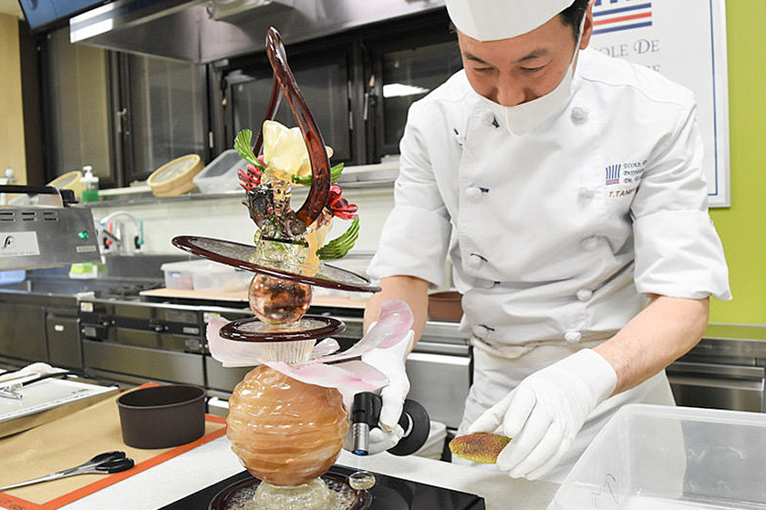 略歴:本校卒業後に教師に就任。「ジャパンケーキショー東京・味と技のピエスモンテ部門金賞」、「内海杯技術コンクール優勝」、「モンディアル・デ・サールシュクレ2022日本代表で世界大会準優勝」で受賞歴多数。日本を代表するパティシェ。
