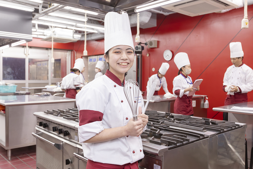 調理と製菓を基礎から実践まで学べる本校を選択。調理師技術科では色彩や、カフェ&バー実習も学び、パティシエ・ブーランジェ科では校内や一般のお客様にパン販売をするなど、本校ならではの授業も魅力でした。