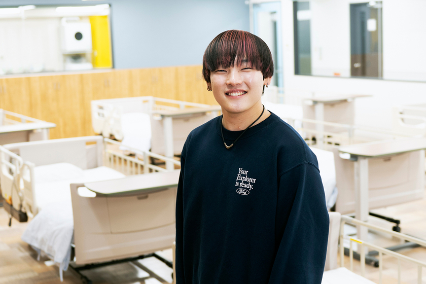 「介護ロボットを作る」という夢があるので、介護分野の情報通信技術について学ぶ「介護ICT(Information&Communication Technology)」の授業には特に力を入れています。どんなロボットが現場で求められているのかを知るため、介護について学んで介護福祉士の資格を取り、現場で働いてリサーチしたいと思っています。