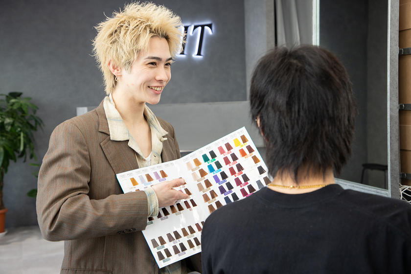 2025年1月にトップアシスタントからスタイリストに昇進しました。この仕事でやりがいを感じるのは、美容師対お客様という関係ではなく、人対人として接することができた時です。その場の空間と時間を共有し、自分の技術を通して心が通じ合うと、美容師になってよかった!と実感します。そのためにも、来店されたお客様には最初のあいさつから笑顔で接し、表面的ではない真摯なコミュニケーションを心掛けています。技術面では若者に人気のスパイキーショートが得意。現在勤めているLUVITの社長が開発したヘアスタイルで、社長のアシスタントをしながら実地で習得したので、スパイキーショートのカットとパーマの技術では誰にも負けません!