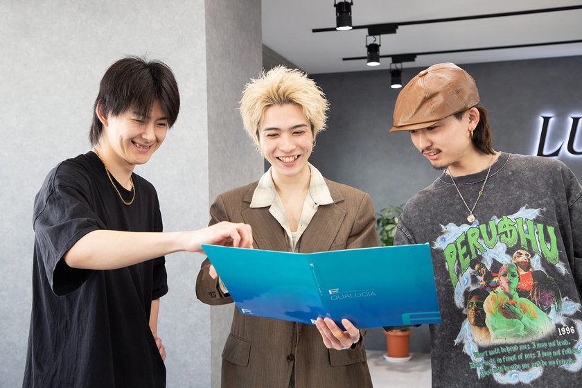 美容師は技術と同じくらいお客様とのコミュニケーションが重要です。お客様との会話の中で、自分自身も経験していることだと話が弾んで、より深いコミュニケーションができます。だから今のうちにいろいろな経験を積み、自分の人間力を高めておいてください。また、男子で美容師を目指す人は少ないかも知れませんが、ぜひチャレンジしてほしいです。美容師業界はやっぱり女子が多く、自分の在学中も男女の割合は2:8くらいでしたが、人数が少ない分だけ男子同士の結束力があり、今でも休みの予定を合わせて遊んだりと交流があります。同じ分野、同じ職業でずっと付き合える仲間ができることも、専門学校の魅力だと思います。