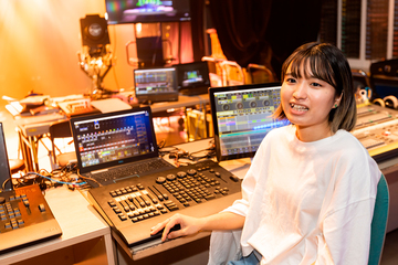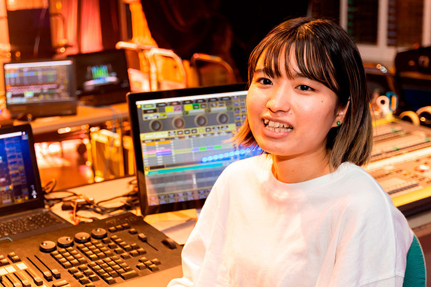 もともとバンドが好きで、高校時代にKANA-BOONの日本武道館公演を見に行ったとき、曲に合わせた世界観を表現している照明に衝撃を受け、私もやってみたい!と思いました。学生時代は、機材にも限りがあるので、実習では照明を吊るすときに使う脚立を取り合ったり(笑)、先生に覚えてもらうために名前を書いたゼッケンを付けたりしていました。そんなふうに自分からガツガツ行ったからこそ、多くのことを学べたと思います。