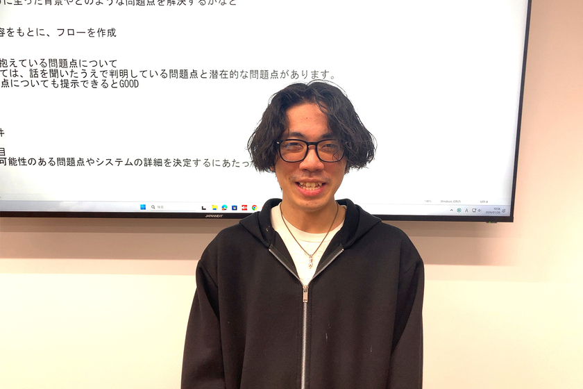入学前は、「情報系に興味がある」「早く社会人になりたい」という思いが強く、具体的な目標はなかったのですが、この学校で学んでいくうちに"システムエンジニアになりたい"という夢ができました。まずは、必須取得の基本情報技術者(FE)を取得することが目標です。