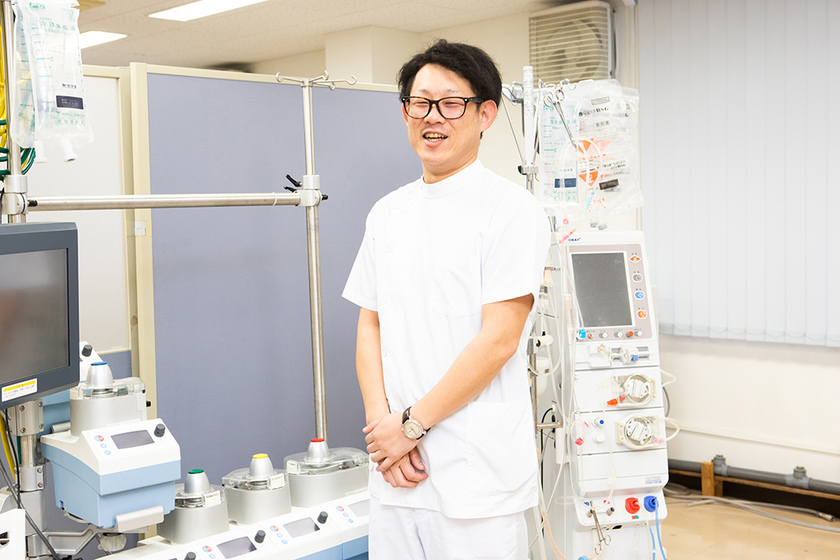 臨床工学技士(ME)は、医療現場で使う機器の操作や保守、管理などを行う専門家。チーム医療の一員として、医師や看護師らとともに医療現場を支えています。病気が発症して間もない急性期の患者さんの場合、1分1秒の違いが生死を左右することもあり、手術に立ち会う際には大きな責任とやりがいを感じます。以前、意識消失の状態で緊急搬送されてきた患者さんの治療に加わり、人工心肺装置の操作を担当したことがありました。患者さんは心肺停止の厳しい状況でしたが、現場が上手く連携することで一命を取り留めることに成功しました。後日、通院されているその方の笑顔を見たときには、この仕事に就いて本当に良かったと思いました。