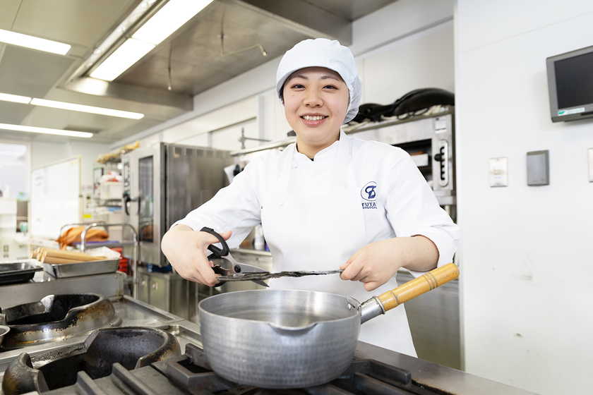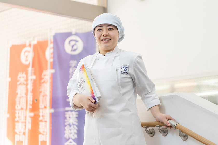我が家は家族でワイワイ楽しく食事をする習慣がありました。父や母が私が作った料理をほめてくれ「料理って楽しい!」という想いがあり、自然と栄養士を目指すようになりました。実は高校生になるまでは調理師になろうと考えていたのですが、「栄養士資格を取っておけば職業選択の幅が広がるのでは」とアドバイスをもらい、吉祥寺二葉栄養調理専門職学校に入学しました。現在の調理実習助手は、主に食材の発注や調理器具の準備、実習中のサポート、後片付けやそのチェックを行います。自分の経験が活かせる部分が多いですが、新しいやり方が導入され最新の知識・技術などが学べる点も刺激となり、キャリア構築になると考えています。