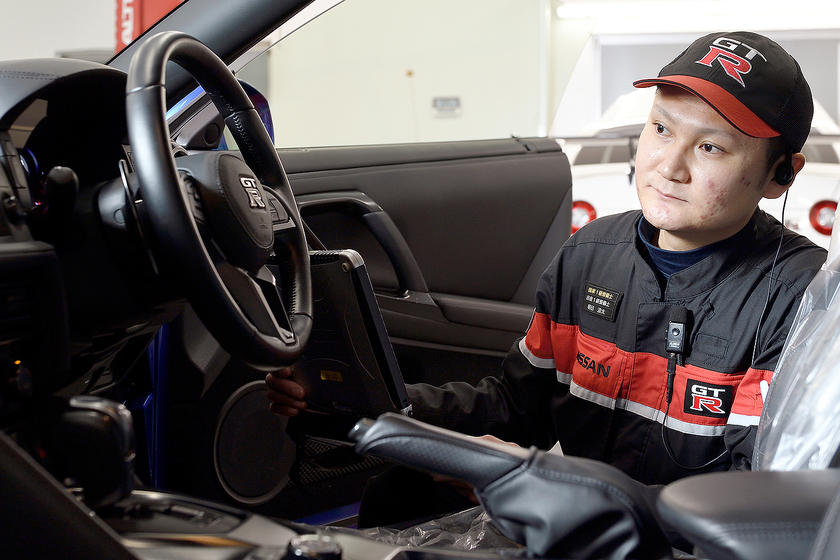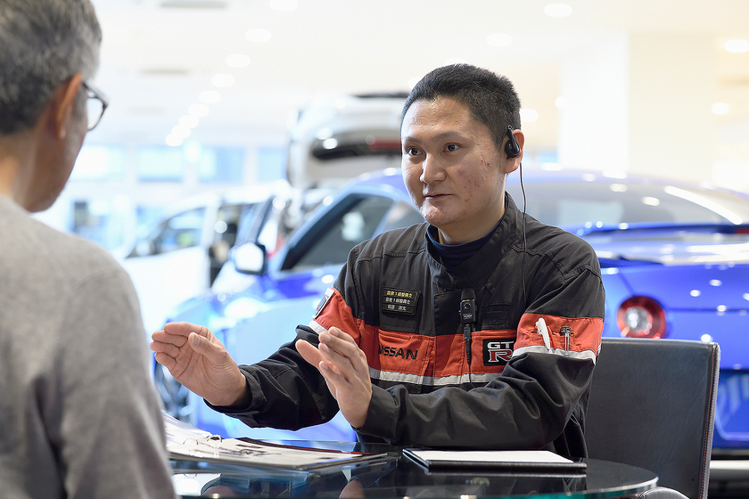 日産プリンス名古屋販売株式会社でGT-Rメカニック、マスターテクニシャンとして日産GT-R車はもちろん日産車の点検・整備・車検を行う朝日さん。学生時代の学びと仕事のやりがいについてお話を伺いしました。