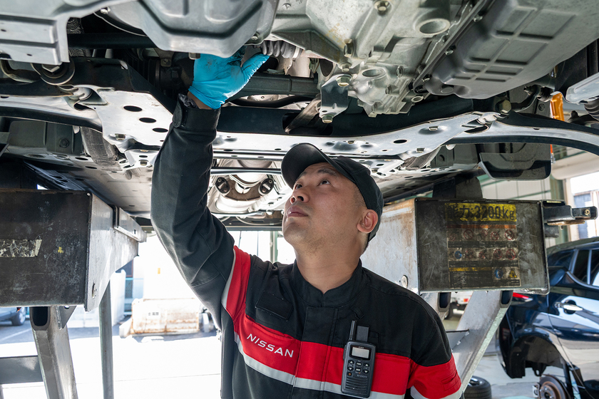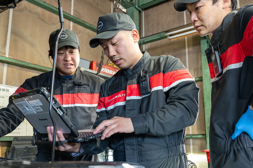 日産系列のディーラーに勤め、自動車の整備や修理に携わっています。担当業務は主に故障診断や部品の交換・修理。この仕事でもっともやりがいを感じる瞬間は「他の整備工場では修理を断られてしまった」と、お困りのお客様の車の故障原因を突き止め、一度の修理で直しきることができた時の達成感と、お客様に喜んでいただけること。自身の技術で人の困りごとを解決している確かな実感があります。機械や電気技術の進化に合わせて、常に新しい技術を学べる成長性も魅力です。「日産」というブランドを背負って整備に取り組む我々の使命は、特に日産車に対しては、どんな故障でも直すということ。日々、誇りと責任感をもって車と向き合っています。