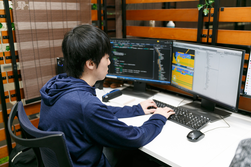 ソフトウェア開発やゲーム開発・配信・運営をしている株式会社イグニッション・エムで、ゲームプログラマーをしています。プランナーの指示のもと、チームでゲームを作り上げていきます。この会社の魅力は上司や先輩、みんなとても仲が良いこと。よりおもしろいゲームにするため、何度もミーティングをするのですが、新人の私も意見がしやすい環境なので、モチベーションが上がります。開発する上で大切にしていることは、キャラクターの見た目や動きの細部まで丁寧に作ることです。また、誰が見てもわかりやすいソースコードにすることを意識しています。夢だったゲームプログラマーとして働く毎日は、とても充実しています!