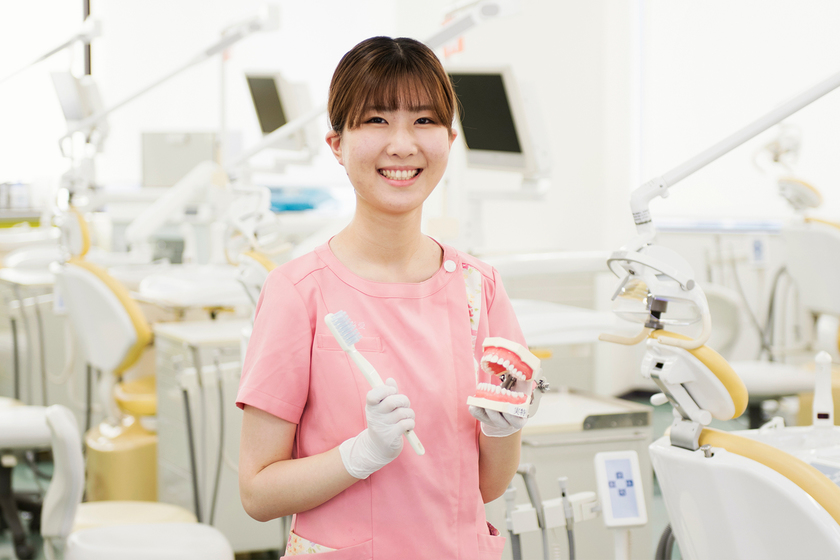 歯科衛生士は国家資格であり、安定して働けるのが魅力でした。学校見学では、歯石の代わりに歯の模型に塗った赤いマニキュアを落とす体験をして、手先を使うことが好きな自分に向いている仕事だと感じました。