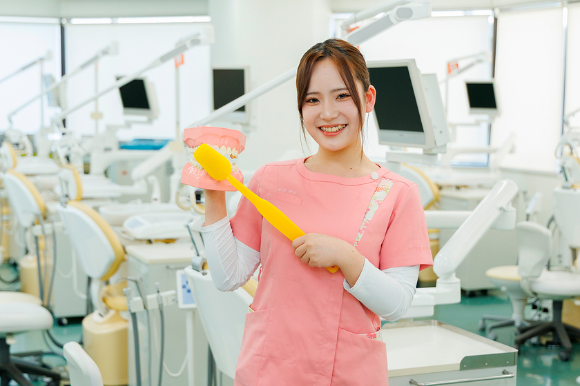 入学後に審美コースか総合コースかで選択ができるところ、自分の時間をしっかり取れるところがオススメです。歯科衛生士は将来の安定性があり、細かい作業が好きな人が向いていると思います。