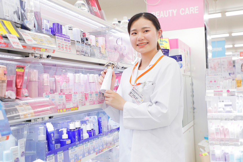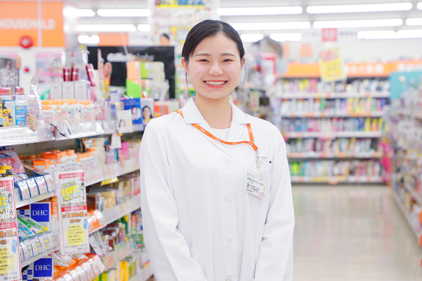 医薬品登録販売者として、医薬品の販売や薬選びのアドバイス・相談のほか、品出しや在庫管理、レジ打ちなどの業務を行っています。この仕事のやりがいは、お客様から感謝の言葉をいただけるところ。お客様のお悩みを解決するためにアドバイスし、後日「この前は良い薬を教えてくれてありがとう。またよろしくね」と声を掛けてもらえた時などは嬉しい気持ちになります。また入社後すぐに、お客様の悩みを聞いた上でオススメの商品を販売する新人コンテストがあり、日焼け止めを扱って関東地区で1位を獲得!とても励みになりました。誰からも信頼される登録販売者になるために社内研修や勉強会にも積極的に参加し、知識を深めていきたいです。