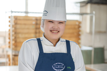 株式会社浦和花見 勤務/製菓技術学科 和菓子科/2025年卒/千葉県出身。お菓子作りを通して人に喜んでもらえた経験から製菓の道を志す。当初はパティシエ志望だったが、日本菓子専門学校での授業を通して和菓子の魅力に目覚め、製菓技術学科 和菓子科を専攻。幅広い分野を学んだ経験を活かし、卒業後は和菓子の老舗・株式会社浦和花見に就職。現在は和菓子職人として、季節を感じられる菓子づくりに取り組んでいる。